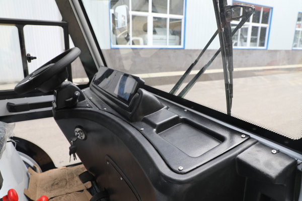 駕駛室材質(zhì)及燈具 鋼制結(jié)構(gòu),8字管一體折彎成型與鈑金拼組結(jié)構(gòu)合理,美觀大方,前一體化嵌入式LED大燈,塑料儀表工作臺,儀表總成包含高亮度電子數(shù)顯儀表、7寸液晶大屏MP5(帶藍牙、USB接口)、紅外線高清倒車影像,帶雨刮器,警示燈。